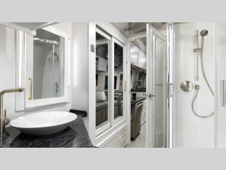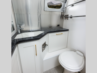 Each model is constructed with a semi-Monocoque aluminum superstructure, an enclosed aluminum insulated and heated underbelly, plus many more durable construction materials so you can enjoy your Classic travel trailer for years to come. You will love the handcrafted interior cabinetry, the panoramic front windows with blackout shades, and the seamless luxury woven vinyl flooring, plus these models feature the most storage of any Airstream so you don't have to sacrifice what you bring along. The residential-style kitchen is packed with luxury and convenience with its Kohler faucet, Corian countertops, and a large stainless steel sink!