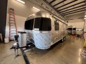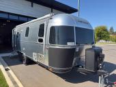 With each Flying Cloud travel trailer by Airstream, there are two axles, and each is built for ease of towing, plus there is a rear-view camera to make reversing and parking easier, and stainless-steel front stone guards to protect the lower segments from road debris. The iconic Airstream design is created outside and inside by the semi-monocoque aluminum superstructure, the temperature reducing one-piece white aluminum roof, the panoramic front windows, and the stylish aluminum wheels. The interior will have you feeling right at home with handcrafted cabinetry, plenty of storage and counter space, sleek roller blinds and blackout curtains, plus residential style faucets!