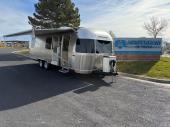 With each Flying Cloud travel trailer by Airstream, there are two axles, and each is built for ease of towing, plus there is a rear-view camera to make reversing and parking easier, and stainless-steel front stone guards to protect the lower segments from road debris. The iconic Airstream design is created outside and inside by the semi-monocoque aluminum superstructure, the temperature reducing one-piece white aluminum roof, the panoramic front windows, and the stylish aluminum wheels. The interior will have you feeling right at home with handcrafted cabinetry, plenty of storage and counter space, sleek roller blinds and blackout curtains, plus residential style faucets!