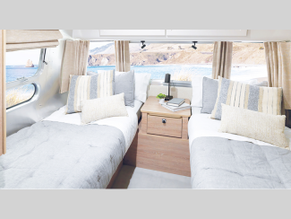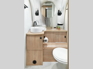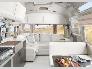 Not only will you find high craftsmanship that you have grown to respect from Airstream, but now you will also find the trademark style and design expertise that Pottery Barn is known for. The residential bathroom is complemented by wall sconces, and the Pottery Barn accessory kit includes a folding table and armchair set, a 16-piece Mason Stoneware dinnerware set, a doormat, storage bins, and more. You will even find a solid oak wood table at the dinette that will last for generations to come!