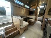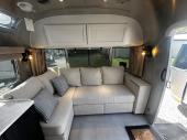 The timeless, beautiful, and comfortable Airstream Pottery Barn Special Edition travel trailer allows you to stay connected while always feeling at home! These trailers feel like an extension of your own home with their elegant décor, and they provide a sanctuary that you can retreat to when you need to recharge surrounded by nature. The luxurious window coverings are made from Pottery Barn's best-selling Emery Linen Curtain Collection, and there is an airline-style table hidden in the sofa's armrest. The door-mounted chalkboard allows you to leave personalized messages for the group, and the built-in spice rack and knife block let you keep everything close at hand while you cook. Plus, the bedroom has Pottery Barn Belgian Flax Linen bedding for extreme comfort. Some of the excellent exterior features include a rearview monitoring system, power awning, a low-pressure gas grill connection, Quietstream climate control, power stabilizer jacks, a 300W solar package with a solar controller, and front stone guards.