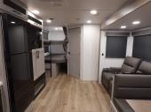 The perfect travel trailer for a larger family or one that enjoys traveling with friends! One large slide opens up the interior living space nice and features a U-shaped dinette and theater seating to provide plenty of seating for everyone. Enjoy the 40" HDTV opposite the seating for a movie indoors, and game night will be easy with everyone at the dinette which can also be converted for added sleeping if needed. The double entry doors will make loading and unloading simple and allows you to easily slip in and out of the private bedroom for a morning walk. You can easily prepare all of your favorite meals and snacks with the kitchen amenities provided inside. A three-burner range allows you to easily cook indoors, or you can enjoy cooking outside using the outdoor griddle/grill if you like. There is a 10-cu. ft. 12V refrigerator to keep all of your perishables and drinks nice and cold, plus a large sink for dishes and cleaning up, and there is also a flip-up counter extension for more prep space. You will also appreciate the rear corner bath featuring a 30" x 36" shower, vanity with sink, soft close porcelain toilet with foot flush, and linen cabinet for your towels.