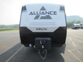 Form and function work together with every one of these Alliance RV Delta travel trailers! They are built with a walk-on roof with a seamless PVC roof covering, Mylar reinforced exterior seals, and a heated and enclosed underbelly to protect your unit. The commercial grade vinyl flooring will be easy to clean, and the oversized atrium windows throughout let in plenty of natural sunlight. With 62 cu. ft. of drop frame pass-through storage, you can bring along all of your essential camping gear. There are many at home interior conveniences including a Bluetooth speaker, USB charging throughout, and even Roller shades throughout. Come find your favorite model today!