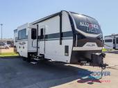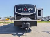 With any Valor All-Access toy hauler by Alliance RV, you will be getting a travel trailer or fifth wheel with exceptional features at a great value! There is a painted fiberglass front cap, Mylar reinforced exterior seals, Azdel-backed fiberglass sidewalls, and a walk-on roof with a seamless PVC roof covering for added strength and durability. The 101" wide-body Benchmark chassis means you can bring along your larger toys, and the multipoint tie-down system will keep your toys safe and secure on the way to the campground. All of your power needs will be met with the Masters of 12 Volt Package that includes a 12V JBL sound system and USB charging stations throughout, plus the Off the Grid Pack comes with a 400-watt solar panel, 30-amp charge controller, and generator prep to keep you going all week long. Some of the interior comforts you'll enjoy are commercial grade vinyl flooring with no carpet so you can easily clean up, black cabinetry hardware, residential LED recessed ceiling lights, and so much more!