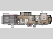 There is room for your off-road toys and the whole family in this toy hauler! The bath and a half makes life more convenient and the dual entry doors create a smooth flow of traffic in and out of the unit. Aside from 13' of garage space and an entrance/exit door, there are also opposing HappiJac sofas with a queen bed above them, a loft that opens to the garage, and a half bathroom. The chef can prepare their best meals with the four burner cooktop while two others sit at the flip up counter with two bar stools. After a fun day on the trails, wash up in the full bathroom with the 48" x 30" shower, grab your pajamas from the front wardrobe or flip top dresser in the front private bedroom then relax on one of the two sofas by the fireplace and 50" HDTV!