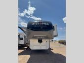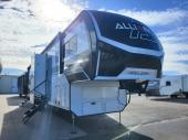 You can bring your toys with you wherever you go with any one of these Alliance RV Valor toy hauler fifth wheels! They are adventure-ready with a quality build from the walk on roof with seamless PVC roof covering to the commercial grade vinyl flooring and MorRyde CRE3000 suspension system. The Performance Running Gear package comes with a 101" wide-body benchmark chassis platform, 7,000 lb. Dexter axles, and a space enhancing drop frame storage compartment to pack in all your riding gear. You can even go off-gridding thanks to the Off the Grid Pack that has two 400-watt solar panels, generator prep, a 60-amp charge controller, and a 100-amp hour lithium iron phosphate battery. Some of the interior comforts you will enjoy are the hardwood cabinet doors and drawers, solid surface kitchen countertops, and commercial grade vinyl flooring with no carpet to make clean up a breeze. The Valor toy haulers are also the Masters of 12 Volt with USB charging station throughout, a 12V refrigerator, and more 12-volt features to make camping hassle-free!