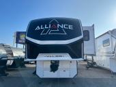 You can bring your toys with you wherever you go with any one of these Alliance RV Valor toy hauler fifth wheels! They are adventure-ready with a quality build from the walk on roof with seamless PVC roof covering to the commercial grade vinyl flooring and MorRyde CRE3000 suspension system. The Performance Running Gear package comes with a 101" wide-body benchmark chassis platform, 7,000 lb. Dexter axles, and a space enhancing drop frame storage compartment to pack in all your riding gear. You can even go off-gridding thanks to the Off the Grid Pack that has two 400-watt solar panels, generator prep, a 60-amp charge controller, and a 100-amp hour lithium iron phosphate battery. Some of the interior comforts you will enjoy are the hardwood cabinet doors and drawers, solid surface kitchen countertops, and commercial grade vinyl flooring with no carpet to make clean up a breeze. The Valor toy haulers are also the Master of 12 Volt with USB charging station throughout, a 12V refrigerator, and more 12-volt features to make camping hassle-free!