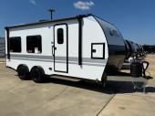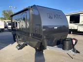 With any PLA 450 toy hauler travel trailer by ATC Trailers, you will enjoy lightweight towing and a configurable garage space for your toys, gear, and more! The all-aluminum and composite construction features no wood so you won't have to worry about rot, and the All-Weather Protection Package means you can extend your camping season. There is a 200-watt solar panel, a 100-watt inverter, and 120V/USB outlets to keep your adventures going. Outside, you'll find storage for your gear, a power awning with a light strip, sleek frameless dual pane windows, and more convenient features. The interior is just as accommodating with aluminum cabinets, dimmable can ceiling lights, configurable furniture track system, and solid surface countertops!