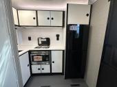 If you're ready to escape your busy weeks for weekends at the lake, this toy hauler is for you! Your kayaks will fit perfectly when you use the space all the way up to the front kitchen, and there is a cable-less rear ramp door for easy unloading. There is also an Airline Track tie-down system to keep your gear secure, and an optional Happijac queen bed can be added if you need additional sleeping space other than the sleeper sofa. The front kitchen includes a two-burner cooktop, a convection microwave, and a 12V refrigerator to keep cold items fresh.