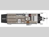 Time spent in this toy hauler will be time well spent! There is 15' 7" total garage space for your toys plus a cableless rear ramp door for easy unloading. You can whip up a meal on the LP two burner cooktop or in the convection microwave when you get back from trail riding, and the 10-cu. ft. 12V refrigerator will keep your food fresh. There is also a dinette table with four folding chairs where you can dine together. A full bath lets you clean up before bed, and you'll find a front private bedroom with a queen bed for all-around comfort!