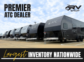 The PLA 550 toy hauler travel trailers by ATC Trailers are built for the long haul with a fully integrated aluminum frame, a one-piece aluminum roof, composite ramp door, and an enclosed underbelly. There is an electric tongue jack outside, along with a pass-through storage, power awning with a light strip, and electric scissor jacks for easy set up. The LifeTrac modular component system will let you configure your garage space how you need it, and there are three rows of Airline tracks with covers to secure your gear. You will also love the interior with its aluminum cabinets with solid surface countertops, dimmable can ceiling lights, and composite with commercial-grade vinyl flooring to name a few comforts!