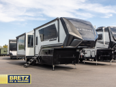With any Model G toy hauler fifth wheel by Brinkley you will enjoy luxurious amenities, tons of storage space, and innovative features that have been developed and tested in the real world. Durable construction includes an industry leading PDI process, an industry best insulation package, and reinforced and walkable slide roofs. Some of the exterior features you'll find are a 3-way pass-through with a multi-functional flip-up bulkhead wall, under I-beam storage, a MAX-Vision reverse lighting system, and a low-maintenance roof to name a few. A Rockford Fosgate audio system comes standard, along with a Full app-based coach control system (iOS & Android) that lets you control your fifth wheel's functions right from your mobile device. You will find the solar system with a designated storage area to be ultra convenient, plus there is a FlexPower 5500 with a dual fuel inverter generator for all your power needs. Head inside to find a residential interior with Brinkley's CraftSense wood trim construction, floating entrance steps, integrated window screens and insulated blackout blinds, and residential solid surface countertops plus backsplash. You will also enjoy the neon shower lighting and recessed medicine cabinets in the bath, plus motion activated LED bed lights and dual bedside outlets in the bedroom. Choose a Model G toy hauler fifth wheel to experience all the luxury it has to offer!