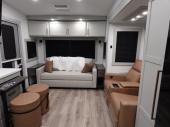 The Brinkley mid-profile Model Z fifth wheels bring you clean lines and an upscale look with plenty of style and exciting new features like the industry first brass plumbing connections. These units also feature an automotive grade front cap, plenty of exterior storage, dual exterior hot and cold showers, and wide stance leveling jacks for easy set up. Residential frameless windows provide a clean look and beautiful views, and ample electrical outlets and USB/USB-C outlets allow all of your electronics and appliances to easily be used and charged.