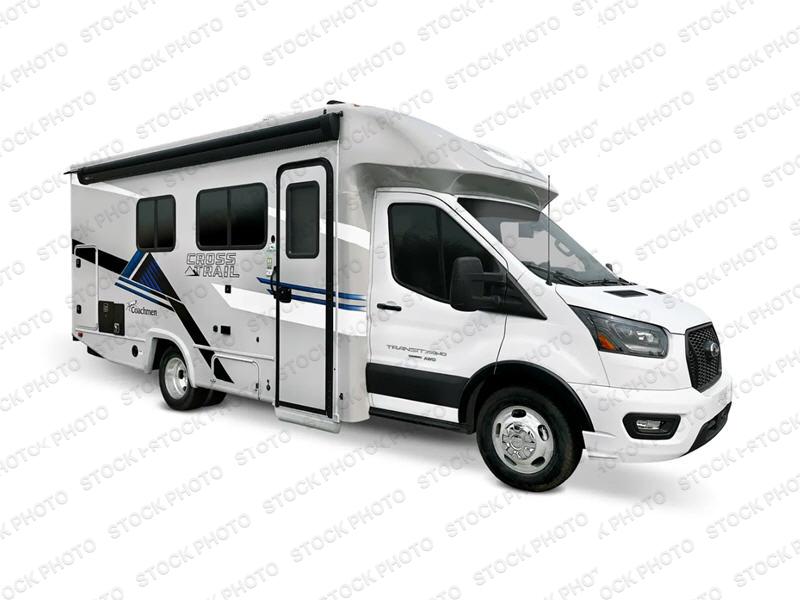 The Cross Trail EV Class C gas motorhomes by Coachmen offer livable and storage friendly coaches with an interior/exterior Smart TV, extra large kitchen counters, and large sliding tinted windows. Also included is the Renogy Empowered state-of-the-art hybrid electrical system designed to operate every coach function from battery power, including the A/C, and is convenient for operating systems while traveling without the use of a generator. Each has a fuel-friendly Ford transit chassis, Azdel composite vacuum bonded sidewalls, and a CrossFlex roof membrane, providing more puncture resistance. And the available all-wheel drive means you can go off the beaten path if you choose that option!