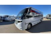 Enjoy the compact and stylish look of a European coach with the Euro Class A gas motorhome by Coachmen RV! There is a fiberglass front cap and a Ford F53 7.3L V8 chassis that will add to the life of your RV. The driver will love having a back up monitor with side view cameras, and the passenger can use the computer workstation to work remotely if needed. There is also traction control, cruise control, plus a tilt and telescoping steering wheel that will make the drive that much easier. An exterior propane hook-up also comes standard, along with radius trunk doors for your gear, and exterior storage for your outdoor gear. Head inside to find modern features, like the stainless steel appliances, square windows with day/night shades, and the list goes on!