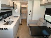 You will find lots of versatility in this coach! There are rear twin beds that can convert into a 95" x 74" bed with an optional 32" TV for movies in bed, a sofa with a sleeper option or you can switch it out for the optional recliners/dinette. The chef can prepare their best home cooked meals with the induction cooktop and stainless steel double door refrigerator to keep your perishables fresh. The full bathroom has a 24" x 36" shower with a skylight above for added natural lighting. There are plenty of overhead cabinets throughout for your items to stay out of the way, plus a 32" TV above the entrance door. You even have an exterior 95" x 38" x 37" mega pass-through storage area for your outdoor gear!