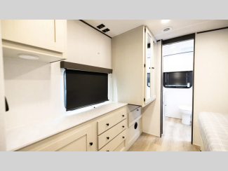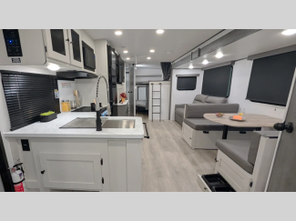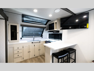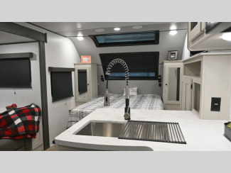 You'll find full bath and kitchen amenities in each model, along with comfortable seating and sleeping spaces. The Azdel composite panels provide durable construction and the heated and enclosed underbelly provides added protection against the elements. There is also convenient storage throughout for your valuables, camp gear, food, and more.