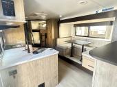 You will love the space provided in this dual entry Cherokee Grey Wolf travel trailer that has double-size bunks! The rear entry door leads right into the full bath allowing easy access from outside when you need to use the bathroom while you're enjoying the great outdoors. The large U-shaped dinette slide will not only seat everyone comfortably for a meal or a game, but since it also slides out, it opens up the interior even more to give you plenty of space for foot traffic. For all of your outdoor gear, you will find the outside storage compartments handy for stowing away your things when not in use. While the kids enjoy their bunk beds, you will enjoy a good night's rest in your RV king bed with wardrobes on either side up in the front private bedroom!