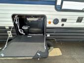 This Cherokee Grey Wolf travel trailer has some of the best accommodations for your group! First of all, it provides you with two entry doors so that everyone can come and go as they please. And before you even reach the interior, you will find that this trailer has an outdoor kitchen all ready for your summertime picnics. Once you do finally make your way to the interior, you'll find that the fireplace creates a beautiful living space next to the sofa and U-shaped dinette. You will also appreciate having a large pantry so that you can stock up on the food your family loves. The double-size bunks have a ladder for easy climbing, and the private bedroom has an RV king bed for easy relaxing.