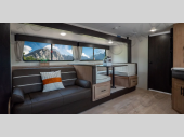 You and your spouse will have a fun time camping in this travel trailer! You will find all of the comforts you need with plenty of livable space including a U-shaped dinette slide. There is also a sofa for more seating when company arrives with a shelf above for your books. The spacious full rear bathroom has a shower with a skylight for more head room and natural lighting. You will find ample storage for clothing in the wardrobe beside the RV king bed in the front private bedroom. There is even an outside kitchen protected by the 15' awning!