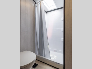You will love the real wood cabinet doors and drawers inside, along with LED lights and a black stainless steel farm sink that will have you feeling more at home. There are power stabilizer jacks to make your RV more secure, and the power awning with LED accent lighting will create an outdoor space campground neighbors will want to check out.