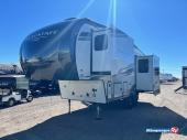 Camp in comfort with your favorite person or your friends in this spacious bedroom and bathroom fifth wheel! From the shower with a seat and linen storage to the slide out queen bed, you will feel right at home. There is also a king bed option if you want more space to stretch out at night. The bedroom also offers a dresser, a front wardrobe with shelves, and an optional TV. The main living area provides a hide-a-bed sofa that sleeps two, a rear kitchen with a 12V refrigerator to store lots of food, and a bar top with seating to dine at. You can watch the Smart TV before going to bed or each morning, and the 20' awning gives you even more living space outdoors protected from the outside elements.