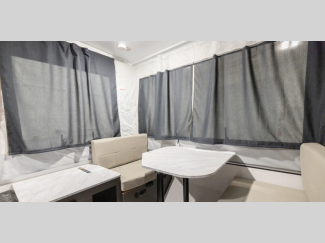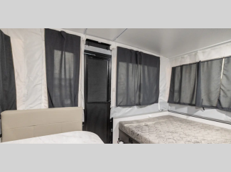 The leaf spring axles and balancing bead fill tires will make towing easier than ever, plus there are two rear stabilizer jacks with sand pads for added stability when you're set up at the campground. Each model also includes solar prep on the frame that will provide off-grid capabilities! Inside, you'll love the Andover Sable wood interior and wood look flooring, along with the quilted top bed mattress, privacy curtains, and LED lights.
