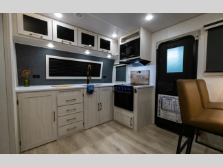 Each model is extended season ready with 12V tank heaters, a sealed underbelly with forced heat and radiant foil insulation, plus Azdel composite walls! The Goodyear tires and tire pressure monitoring system will provide hassle-free towing, and the electric stabilizer jacks make set up a breeze. You'll also appreciate a tankless water heater on board, along with an upgraded slow-close shower door, a central vacuum system, and many more conveniences. It won't be hard to feel right at home with a 5,200 BTU fireplace, custom king bed, Congoleum Carefree linoleum, and residential features!