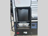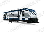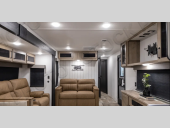 You won't want to camp any other way once you step inside this travel trailer! The rear kitchen has a stainless-steel oven and range to prepare your best meals, a 12V refrigerator to keep your perishables fresh, and a walk-in pantry for your canned goods and snacks for movie night. After a fun day at the beach, you can play a card game at the booth dinette, relax on the theater seating and sofa, or rinse the sand out of your hair in the 32" x 40" shower with a seat in the full bathroom. There is also a front private bedroom with a queen bed slide across from a dresser and a front closet with another closet with washer and dryer prep.