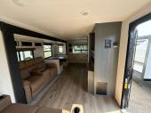 Experience a home away from home with this travel trailer! The front kitchen has everything you will need to prepare your best meals, and you can enjoy them at the booth dinette. The rear private bedroom has a 72" x 80" king bed slide across from a dresser, a wardrobe, and a closet with washer and dryer prep. Freshen up in the full bathroom with the 32" x 40" shower and then enjoy a cup of coffee relaxing on the theater seating or on the sofa! Choose the optional outside micro kitchen with a griddle for even more convenience!