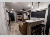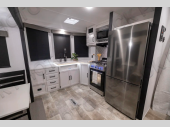 If you are looking for your own space in your next destination trailer, you have found it! With a front separate kitchen, a middle separate living area, a full bathroom and a rear bedroom, you can call one of these spaces your own. The cook will love the front counter space and appliances, and you can dine at the table and chairs or the breakfast nook. Someone can be visiting with friends and family while sitting on the two sofa slides or the theater seating, while another is getting ready in the full bathroom. You will sleep soundly on the king bed slide out, and the closet with washer and dryer prep will make full-time RV living easier than ever.