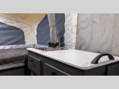 This Rockwood Freedom Series folding pop-up camper is going to let you camp in freedom! You will be able to use the outdoor griddle to cook up some delicious food, and the 9' awning with an LED light will keep you protected while you work. You will also find that the booth dinette will be useful for both meal time and bed time when the two tent end beds aren't enough space, and the storage lid under the front bed provides storage for luggage, blankets, and more!