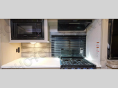 Once you step foot in this travel trailer, you won't want to camp any other way! There is plenty of entertainment and seating for everyone in the rear living area with the tri-fold sofa, the theatre seating with cupholders, and the 50" LED TV with a fireplace. You can cook your meals either indoors with the kitchen island or enjoy some fresh air at the outside kitchen/bar then head indoors and eat it comfortably at the booth dinette. There are plenty other convenient features like the hutch for your dishes, the 30" x 36" walk-in shower, and the Texas-sized exterior pass-through storage area!