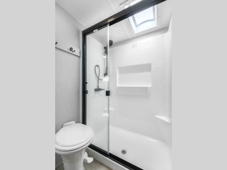 - Fiberglass one-piece shower