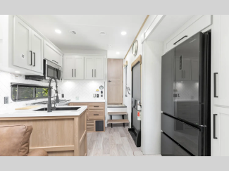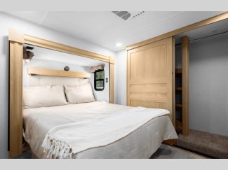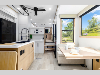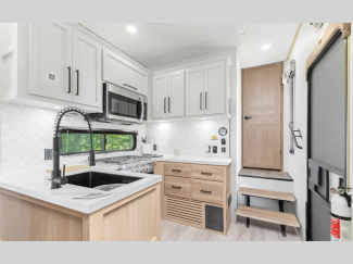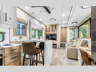 They are created with the perfect balance of size, space, features, and luxury. The automatic electric level up system will make setting up easier and the underbelly armor will protect your unit from road debris. The models come with two 15k BTU A/C units, heated holding tanks, hitch light, and many more convenient camping features.