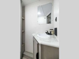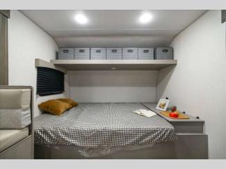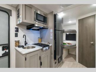 Each model is constructed with a BAL NXG frame for durability, and an aerodynamic front profile for better fuel efficiency. You will find drop edge thermofoil countertops in the kitchen, USB charging ports, and kitchen sink cup rinser for added comfort when you need it. Each model also includes a power awning with light strip and adjustable legs, solid entry steps, an Easy Lube axle for smooth towing.