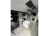 You can't beat this fifth wheel that has just about everything you could need for camping trips! There are two private bedrooms; one up front with a custom king bed with and one in the back with a custom queen bed and its own full rear bath. You'll also find the second entry door located in the rear bathroom for added convenience! The kids are sure to love the loft with a ladder, two bunk mats, plus storage, or you can utilize this space for just storage if you don't have any guests staying over. The middle living area will be the perfect place to meet together since there are dual opposing slides for added space, theater seating and a table and chairs, plus a large kitchen island that will bring the whole room together. There is even a fireplace for a more cozy feel and a walk-in pantry to keep snacks