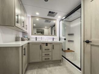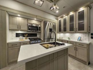 Choose a Solitude fifth wheel by Grand Design today, and experience full-time camping or extended-stay vacations with residential features, taller ceilings, deeper cabinets, and larger scenic windows!