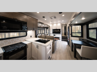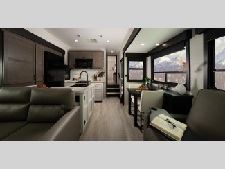 Some of the other top features that will catch your eye are the TrussTXL Roof System with Alpha roof membrane provides a durable and leak-resistant roof. At the same time, the Therma Shield zero-degree tested weather protection ensures that your Cyclone toy hauler fifth wheel can withstand even the most extreme temperatures. In the interior, residential-finished dovetail-jointed drawers throughout provide ample storage and a touch of luxury. Also, you can enjoy your favorite music with the touchscreen Bluetooth stereo with 4 speakers!