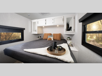 Each is built with TuffShell vacuum bonded laminated construction, reinforced with heavy-duty fiberglass and welded aluminum frames, and includes a full-walkable roof, Equa-Flex axle suspension and self-adjusting electric brakes. Inside the Light, you will appreciate the pet and kid friendly residential vinyl flooring throughout, hardwood cabinet doors, flush floor slides, plus so much more depending which travel trailer you choose.