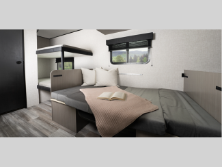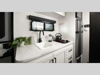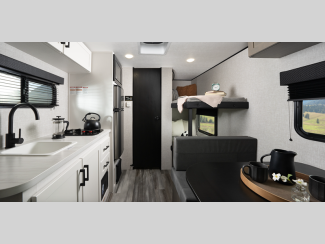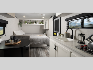 The fully integrated A-frame, Magnum Truss roof system, and galvanized-steel, impact resistant wheel wells are just a few of the durable construction materials that will allow you to enjoy your travel trailer for years to come. Inside, vinyl flooring, pleated window shades, and residential-style kitchen countertops will have you feeling right at home.