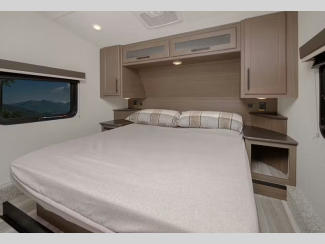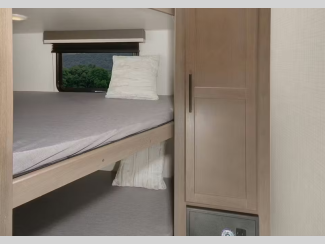 There is a Road Armor shock absorbing hitch pin for smooth towing and an engineered structural I-beam chassis with stamped steel cross-members and outriggers for added strength. You'll feel right at home with pleated privacy shades, residential, shaker style hardwood cabinet doors, and seamless pressed countertops.