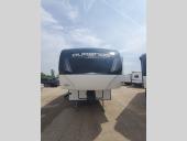 You'll fit right into this spacious fifth wheel for four! The rear kitchen includes plenty of counter space, a three burner drop-in cooktop, plus a spacious refrigerator and a pantry for food storage. Your crew can get cozy on the hide-a-bed sofa or choose the optional theater seating if you're not needing the extra sleeping space. The cook will also love having an outside kitchen with a griddle for pancakes in the morning! The dinette with EZ adjust table will give you a place to dine or play a game of cards, or you can sit outdoors under the 19' power awning with LED lights. The large 30" x 36" shower includes a skylight for more standing room and natural light, and the front private bedroom will provide you with your own space at night. Here, you'll find a queen bed with underbed storage, a wardrobe slide out, and a closet with washer and dryer prep that will make going full-time easier than ever!
