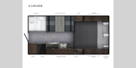 The interiors are designed with premium leatherette seating, solid Sapele hardwood, and acrylic thermal windows. Crank up the tunes with outside speakers, easily enter/exit with the removable third step, and stay protected by the power side awning. The wireless backup camera helps you safely arrive and leave your destinations with no bumps or dings!