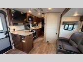 Versatility and comfort is found in this spacious travel trailer. There is a queen Murphy bed up front that can fold away into the wall so you can dine at the fold down booth dinette. The residential sofa with built-in recliners will be the perfect place to relax as you watch a movie on the swing out 32" TV, and the single slide out here will provide more interior space. This model includes a rear corner kitchen with plenty of counter space to prep meals and the full bath is in the other rear corner for privacy. You'll also enjoy the shower skylight for more head room, plus a living area skylight for more natural light.