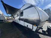 With any Tracer travel trailer by Prime Time RV, you will enjoy a lightweight, easy to tow RV for all your outdoor adventures. Each one is constructed with Eternabond construction that includes laminated aluminum framed walls, floor, and roof for ultra durability. You will be able to extend your camping season thanks to the fully enclosed underbelly, the 30K BTU furnace, and the 15,000 BTU A/C. The Tracer travel trailers are packed with exterior conveniences to make each trip hassle-free, like the power tongue jack and electric stabilizer jacks, the Doggy D-ring pet securement, the universal docking center, and so much more. Head inside to find at-home comforts throughout, including solid wood core cabinetry, LED lighting with motion sensor lights in key locations, and a brushed nickel "J" spout kitchen faucet to name a few.