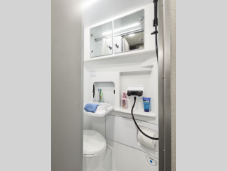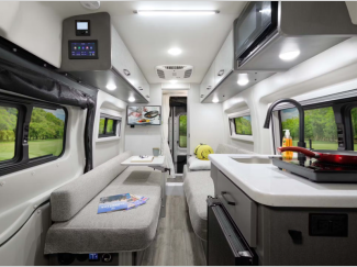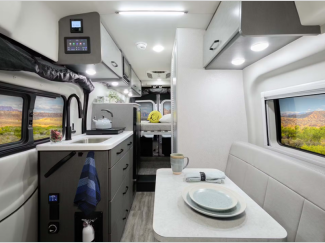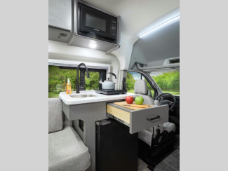 Their compact design is well equipped with all the essential comforts, including a full kitchen to prepare delicious home-cooked meals on the road, a comfortable sleeping area for a good night’s rest, and a Winegard Connect 2.0 system to help you stay connected. The Thule® lateral arm power patio awning with integrated LED lighting creates the perfect ambiance for campground gatherings. With rugged all-terrain tires, you can go farther and feel ready for any outdoor adventure.