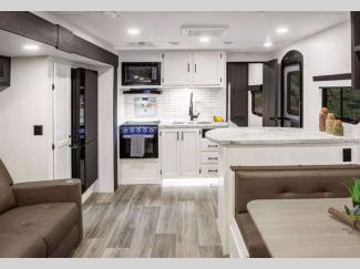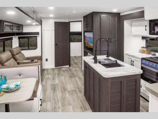 The lightweight Venture RV SportTrek travel trailers and fifth wheels are user-inspired with a purposeful residential kitchen and many storage opportunities!