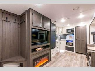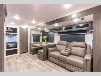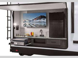 Both the Travel Trailer and Fifth Wheel deliver the same Venture RV quality and comfort. Built with Azdel laminated sidewalls, an NXG Huck bolt frame, and the Weather Shield Package, they’re designed to come with you on your adventures when you want to get away! Inside, enjoy a modern farmhouse design with hand glazed cabinets, Beauflor flooring, and a Serta memory foam mattress. Entertainment and convenience are no issue with a Smart TV with sing arm, JBL sound bar and flip Bluetooth speaker, WiFi prep, and a 200W solar panel. Outside, features like LED power awnings, slam-latch baggage doors with magnetic catches, and a friction-hinge entry door make every trip effortless and enjoyable.