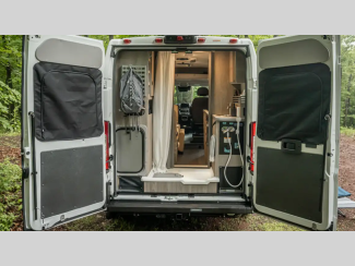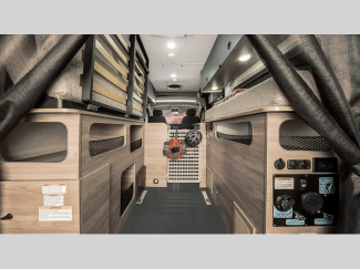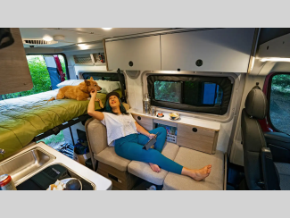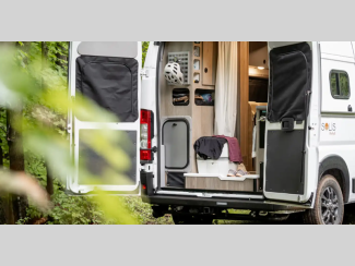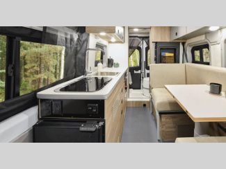 The flexible interiors come with plenty of storage, a fully equipped kitchen to keep your bellies full, and versatile sleeping arrangements. You can go all year around with the extended-season camping capabilities, like the Truma VarioHeat in model 36A and the Truma Combi Eco heating system in model 36B. Outside, you'll find a rear and side screen door to let fresh air in and keep bugs out, a fold-down exterior table, and more convenient features to van life easier than ever.
